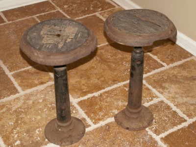 Title (ebay affiliate link): 2 EARLY ANTIQUE 1800s CAST IRON SODA SHOP/BAR STOOLS