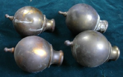 4 lge antique BRASS FINIALS Iron/Brass BED need repair