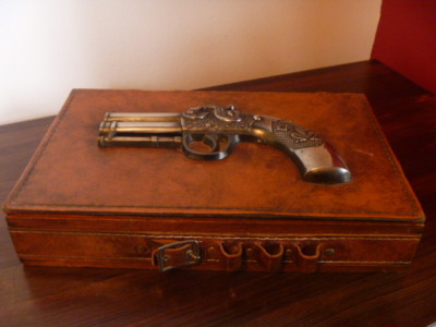 UNUSUAL ANTIQUE LEATHER & WOOD MUSKET BOX / CASE
