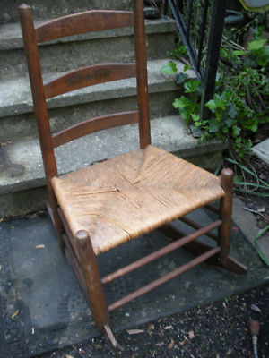Title (ebay affiliate link): ANTIQUE CHILDS ROCKING CHAIR RUSH SE LADDER BACK ROCKER