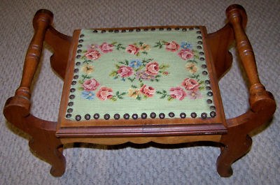 Title (ebay affiliate link): Nice Vintage Needlepoint Covered Wooden Footstool GC!!!