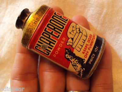 Title (ebay affiliate link): Antique CHAPERONE POWDER keeps dogs off furniture FULL