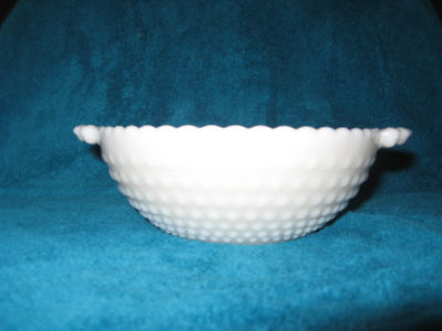 FENTON HOBNAIL MILK GLASS BOWL WITH HANDLES