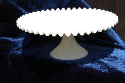 VINTAGE 12 1/2 HOBNAIL MILK GLASS SCALLOPED CAKE PLATE