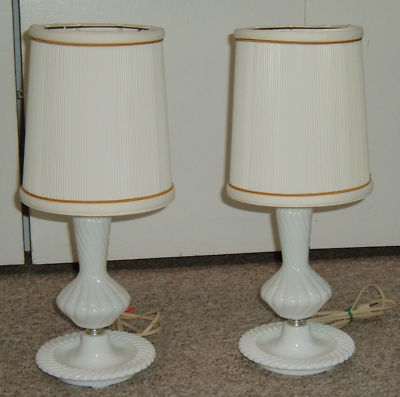 Vintage Swirl Milk Glass Bedside Table Lamps