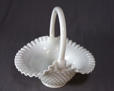 Fenton Basket, White Milk Glass Hob Nail 10"