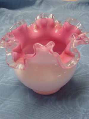 Fenton Hob knob Milkglass Pink Ruffled Edges MINTCond.