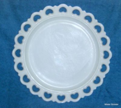 Old Milk Glass Lace Edge Serving Cake Plate Platter 13"