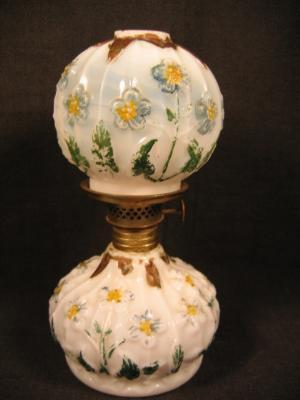OLD MINIATURE GWTW MILK GLASS OIL LAMP ~NR~ OPALESCENT