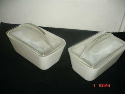 Vintage 2 Pyrex Casserole Milk Glass w/ Clear Dome Lids