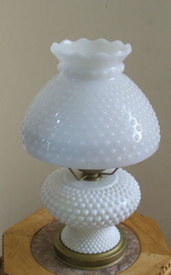 Vintage Fenton Milk Glass Hobnail Hurricane Lamp -2-way
