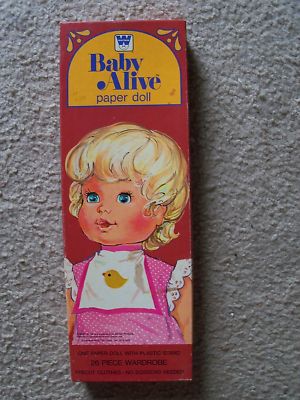 Title (ebay affiliate link): VINTAGE 1974 "BABY ALIVE" UNCUT BOXED PAPER DOLL SET!