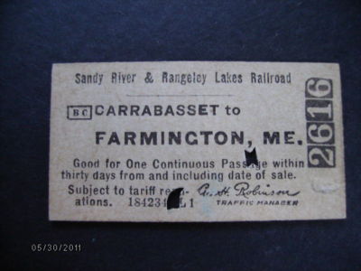 SANDY RIVER & RANGELEY LAKES RAILROAD 1930 TKT CARRABAS