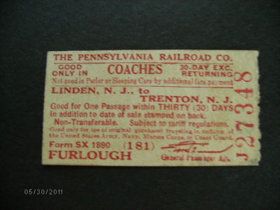 Title (ebay affiliate link): PENNSYLVANIA RAILROAD 1942 FURLOUGH TKT LINDEN TRENTON
