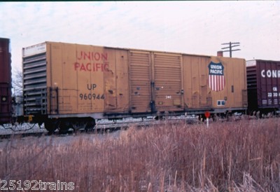 UP YELLOW BOXCAR # 960944 RAILROAD SLIDE