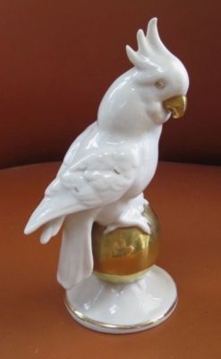 White Dresden Capodimonte Parrot Perched on Gold Ball