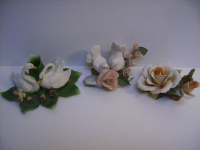 Vintage Capodimonte flower bird lot 3 figurines ITALY