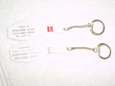 VINTAGE BOWLING PIN ADVERTISING KEY CHAINS SYRACUSE IN.