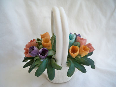 Title (ebay affiliate link): Capodimonte La Botttega Porcelain Tulips & white Basket