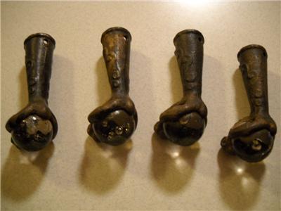 4 ANTIQUE CLAW FEET! Cast Iron/Glass! FURNITURE!