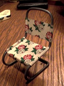 ANTIQUE ROSES TIN LITHO DOLL CHAIR, PATIO FURNITURE?