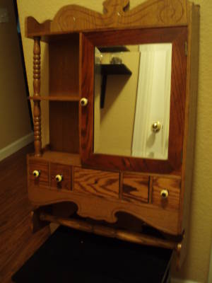 OAK BARBER MEDICINE CABINET W/ BEVELED MIRROR
