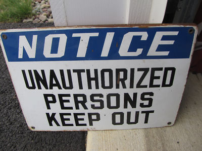 Vintage NOTICE...KEEP OUT Porcelain Sign Nice Colors NR