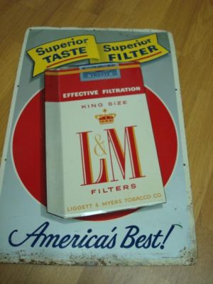 ANTIQUE METAL SIGN L & M CIGARETTE TIN 18 X 12