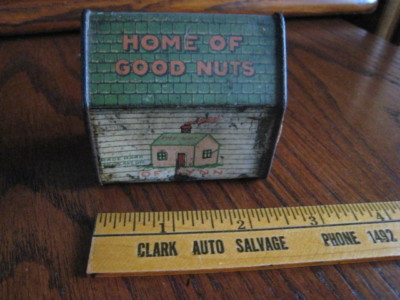 VINTAGE Small House Shaped NUT TIN,The Nut House,Lynn M