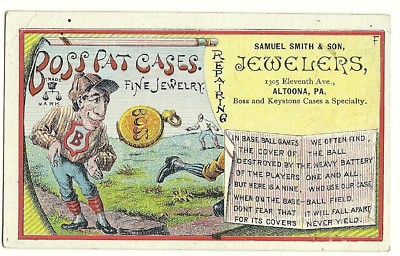 Baseball: 1880s Trade Card; Boss Watch Cases; Altoona