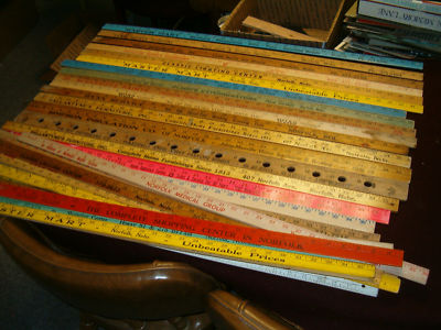 30+ Vintage advertising yardsticks, Norfolk Nebraska