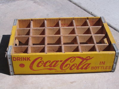 Title (ebay affiliate link): VINTAGE YELLOW WOODEN 24 BOTTLE COCA COLA CRATE- NICE!