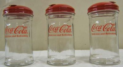3 glass Coke Coca-Cola sugar dispenser vintage new 92 p