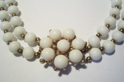 VINTAGE ESTATE 2 STRAND MILK GLASS BEAD CHOKER NECKLACE