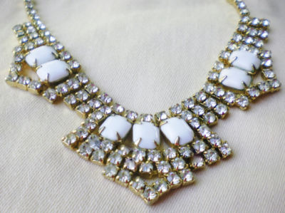 VINTAGE JULIANA MILKGLASS AND RHINESTONE NECKLACE