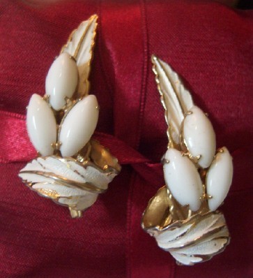 UNIQUE VINTAGE WHITE MILKGLASS ENAMEL ESTATE EARRINGS