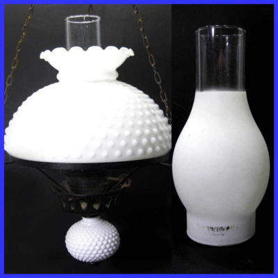 Vtg Milkglass Shade Oil Hanging Electric Ceiling Lamp