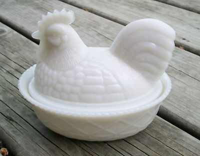 Milk Glass Hen on Nest Covered Dish-5 Inch-CHARMING!!