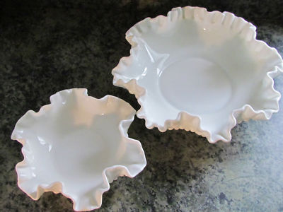 Fenton Hobnail Milk Glass TWO Double Crimped BON BON's