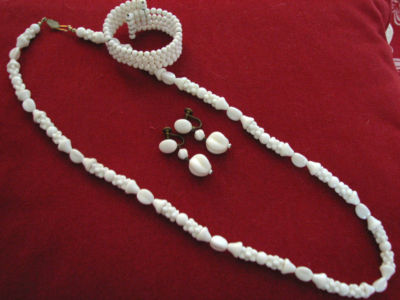 Vintage Milk Glass Necklace Earrings & Bracelet