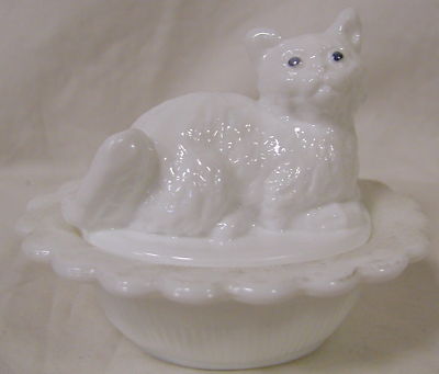 Mosser Glass Milk w/ Blue Eyes Cat Salt Cellar