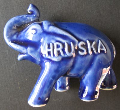 Title (ebay affiliate link): Vintage HRUSKA, Senator NE, G.O.P. Blue Elephant, EX