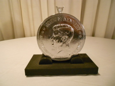 JOHN KENNEDY LG. PRESIDENTIAL COIN CIG. LIGHTER+BASE