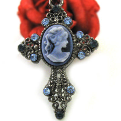 Title (ebay affiliate link): Antique Silver Brass Dark Blue Cross Cameo Necklace 361