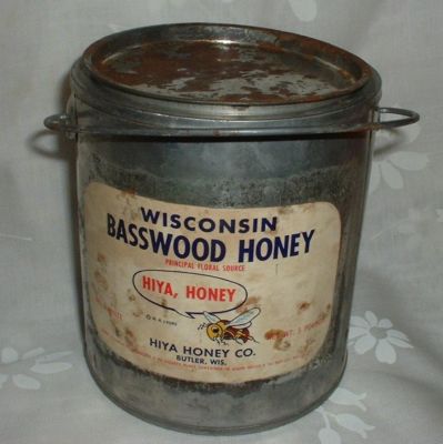 BUTLER WISCONSIN~BASSWOOD~HIYA HONEY TIN~PAIL~W/HANDLE!