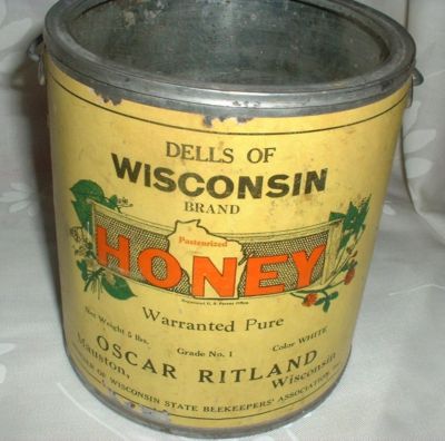 MAUSTON WIS~DELLS~ HONEY TIN~PAIL~W/HANDLE~RITLAND!