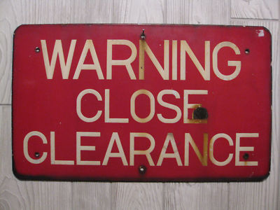 Antique Vintage Porcelain Sign Warning Close Clearance