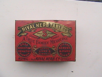 Title (ebay affiliate link): Vintage Rival Herb Tablets Family Medicine Red Tin