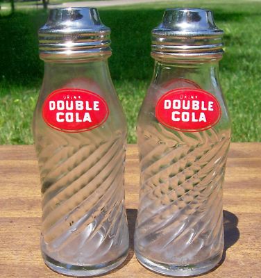 vtg "DOUBLE COLA" GLASS SALT & PEPPER SHAKERS S&P 5"