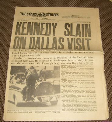 Title (ebay affiliate link): "KENNEDY SLAIN"-STARS AND STRIPES NEWSPAPER-11/23/1963